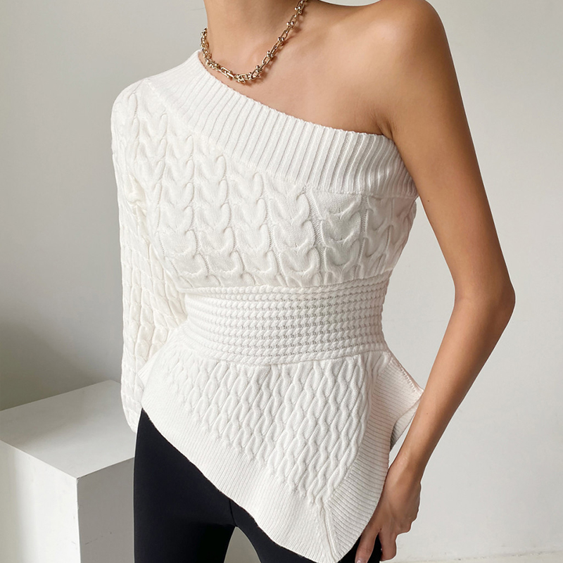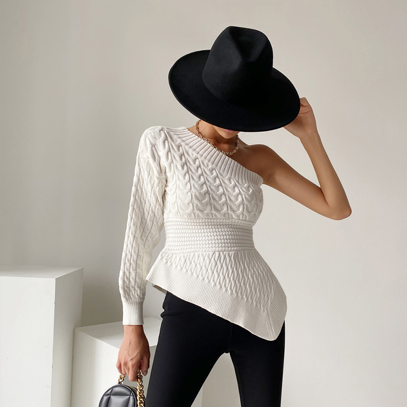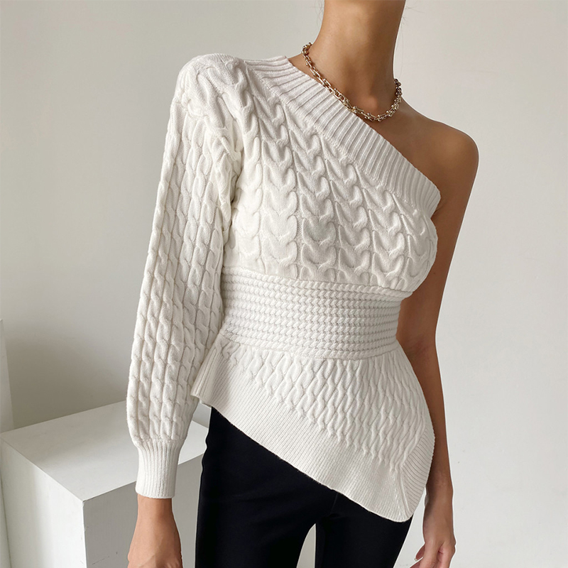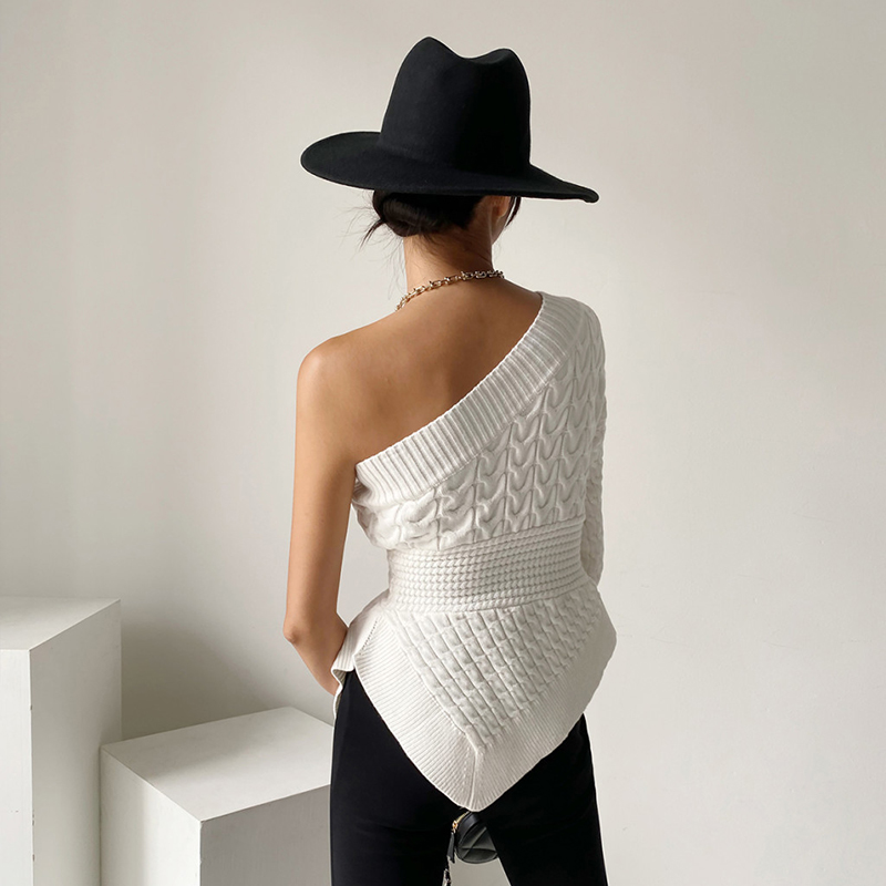 Women's Clothing White Knitting Sweater Irregular Patchwork Long Sleeves Casual Vintage Baggy Ladies Tops Autumn