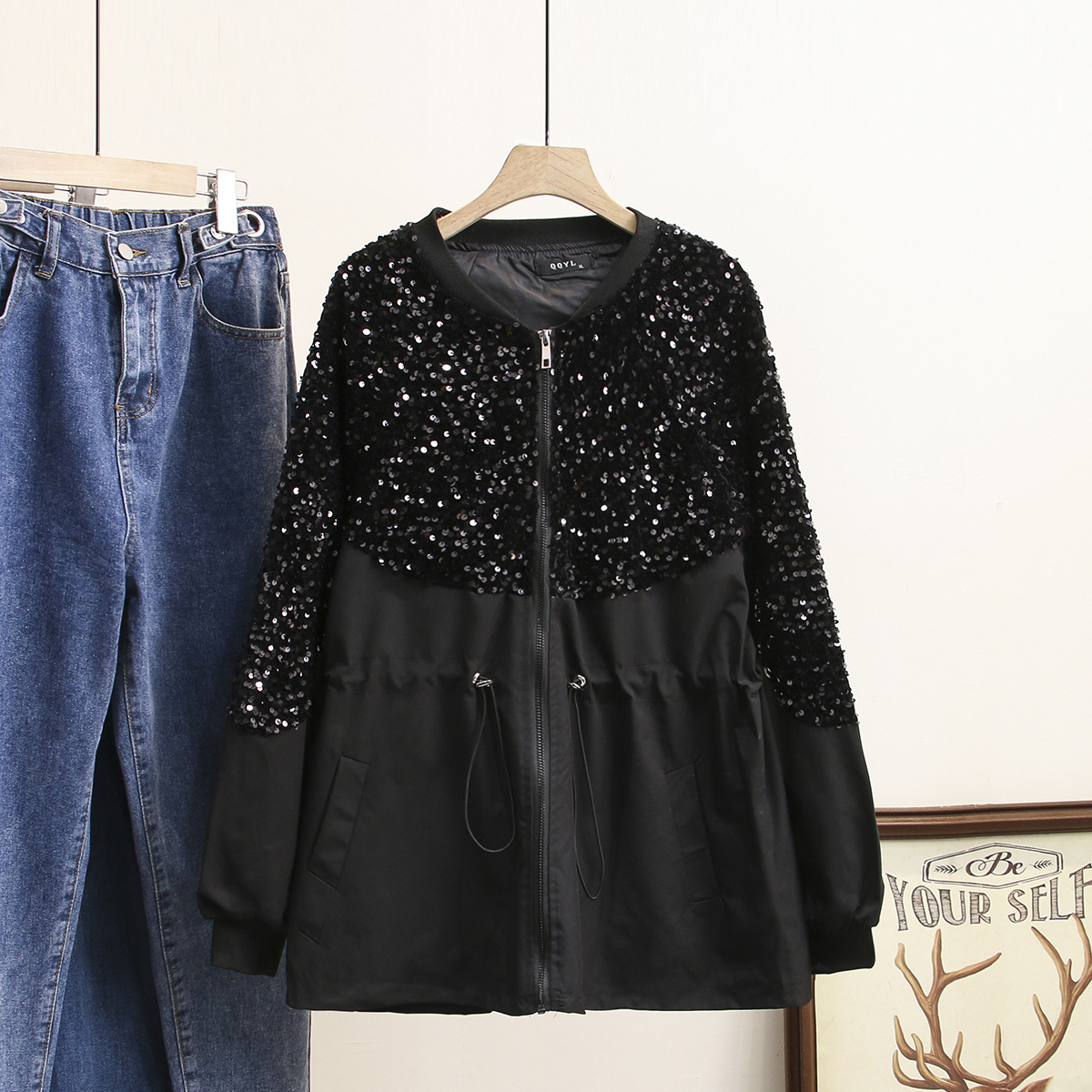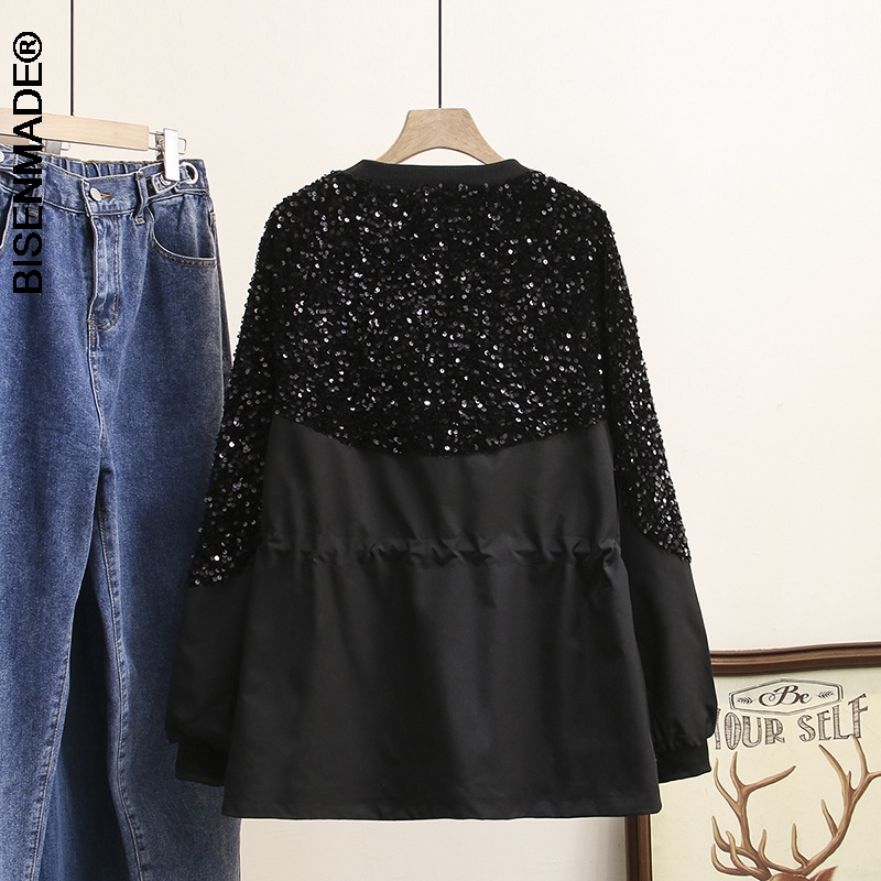 Spring Women Jacket Oversize Fashion Casual Clothes Female coats sequined Splice Drawstring waist chaqueta de mujeres