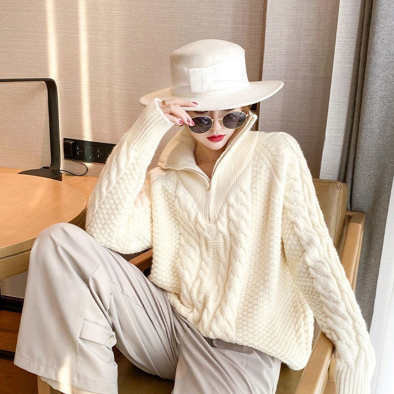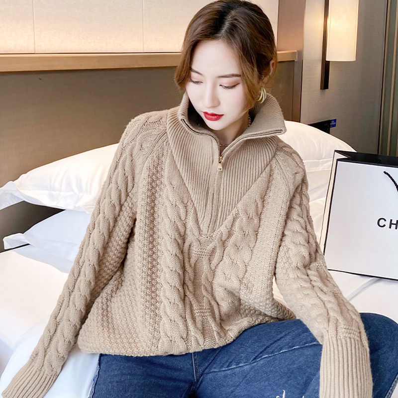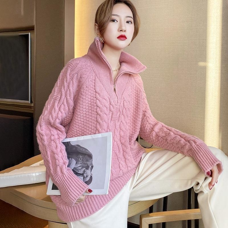 Women's Jumper Loose Womens Winter Sweaters Oversize Turn-down Collar Zippers Solid Knitted Tops Female Turtleneck Women