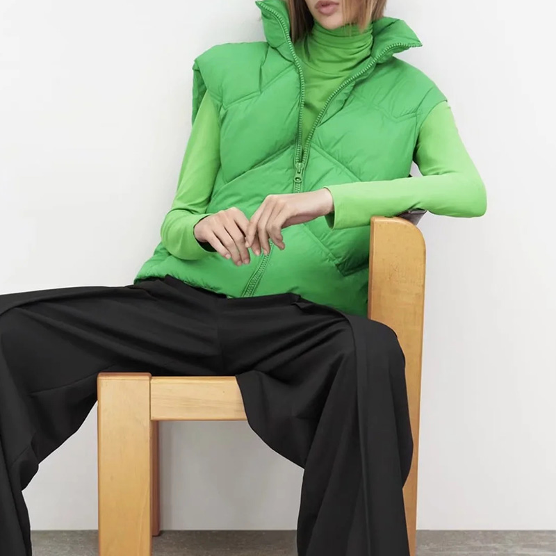 Womens Parkas Vest Jackets Coats Green With Zipper Jacket Female Casual Waistcoat Ladies Sleeveless Solid Woman Outwear