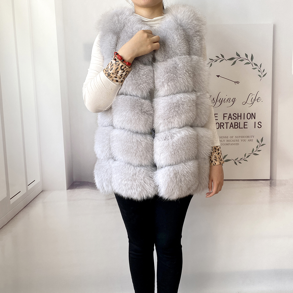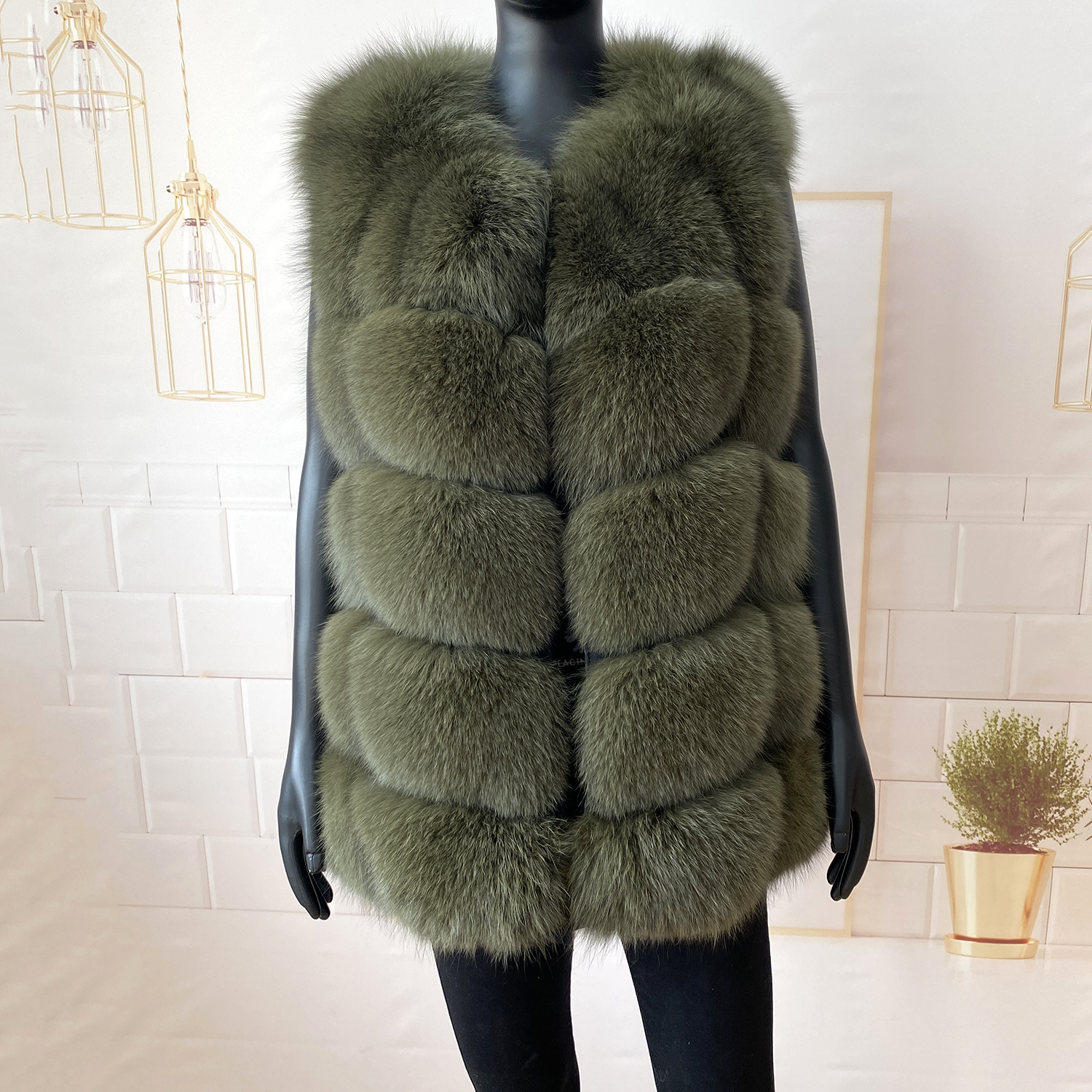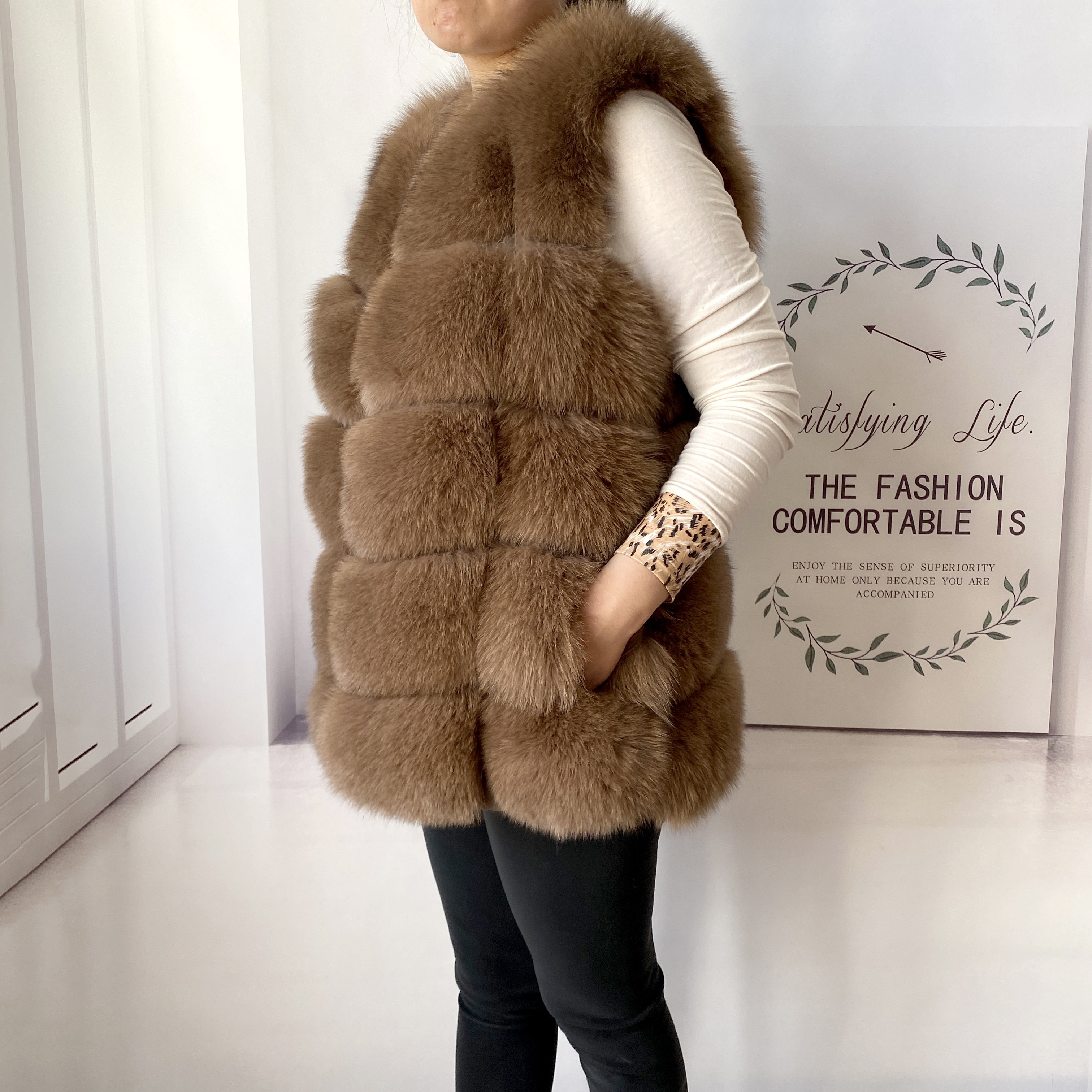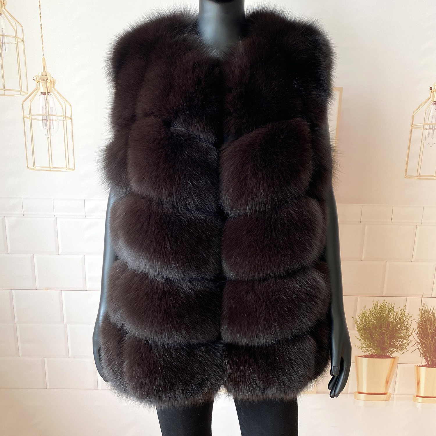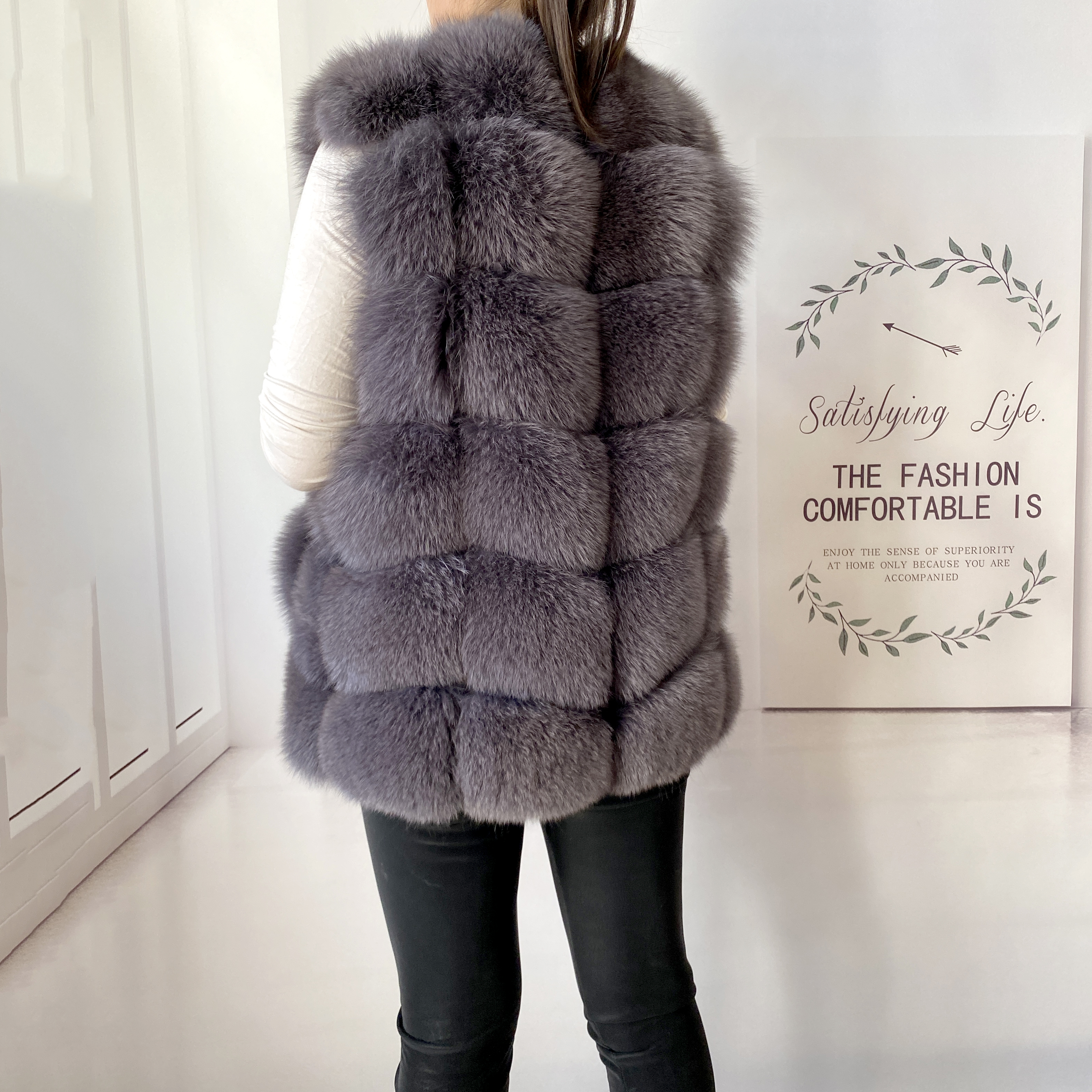Women's Winter Real Fur Coat High Natural Fox Fur Vest Luxurious Warm Sleeveless Dark buckle jacket