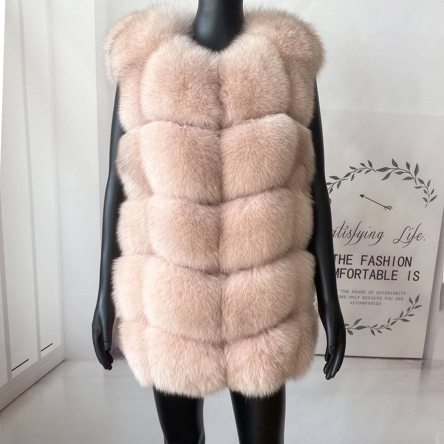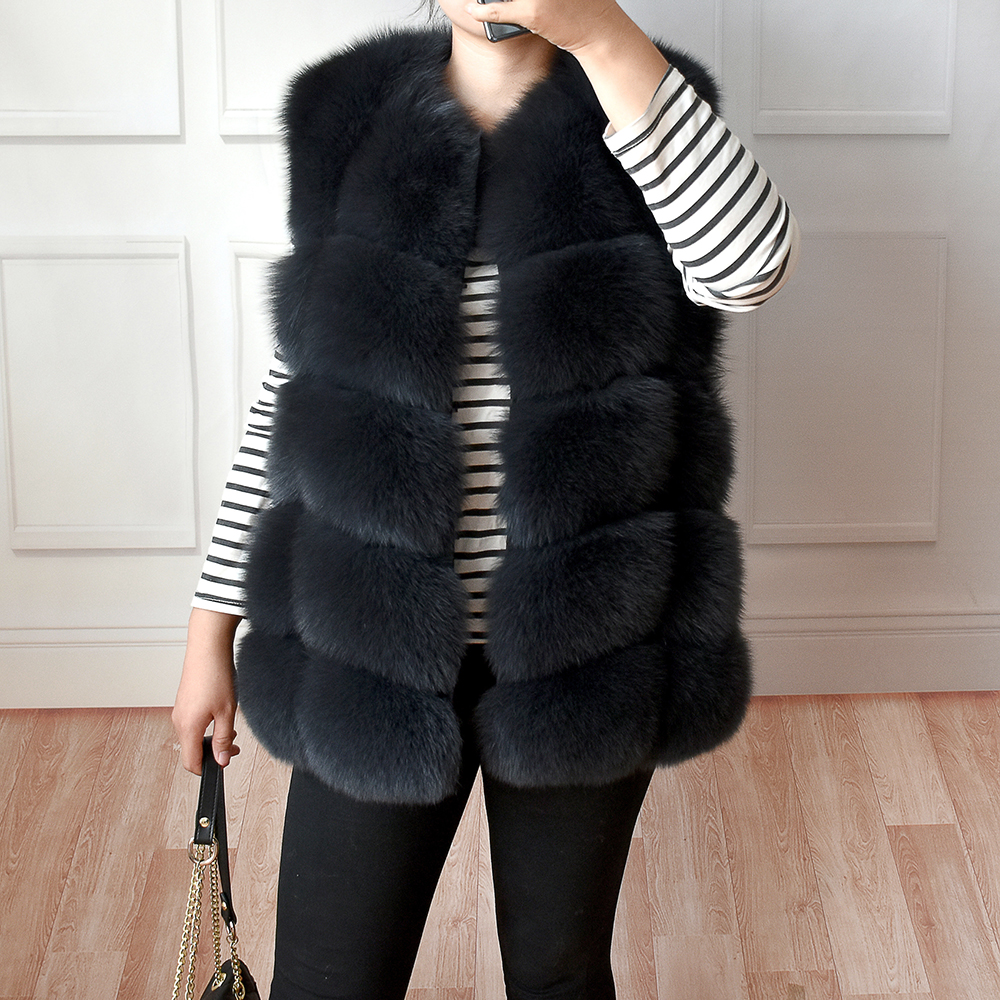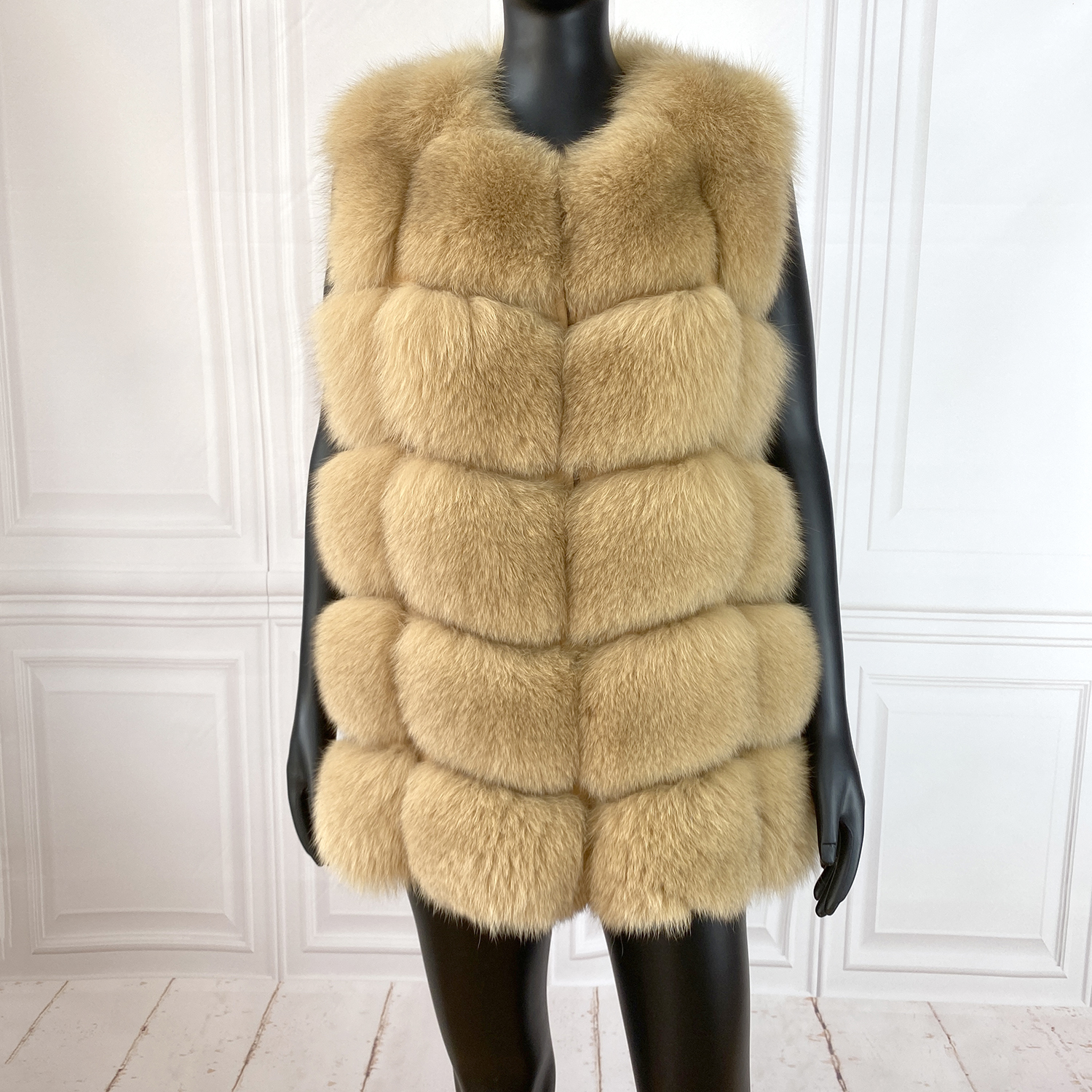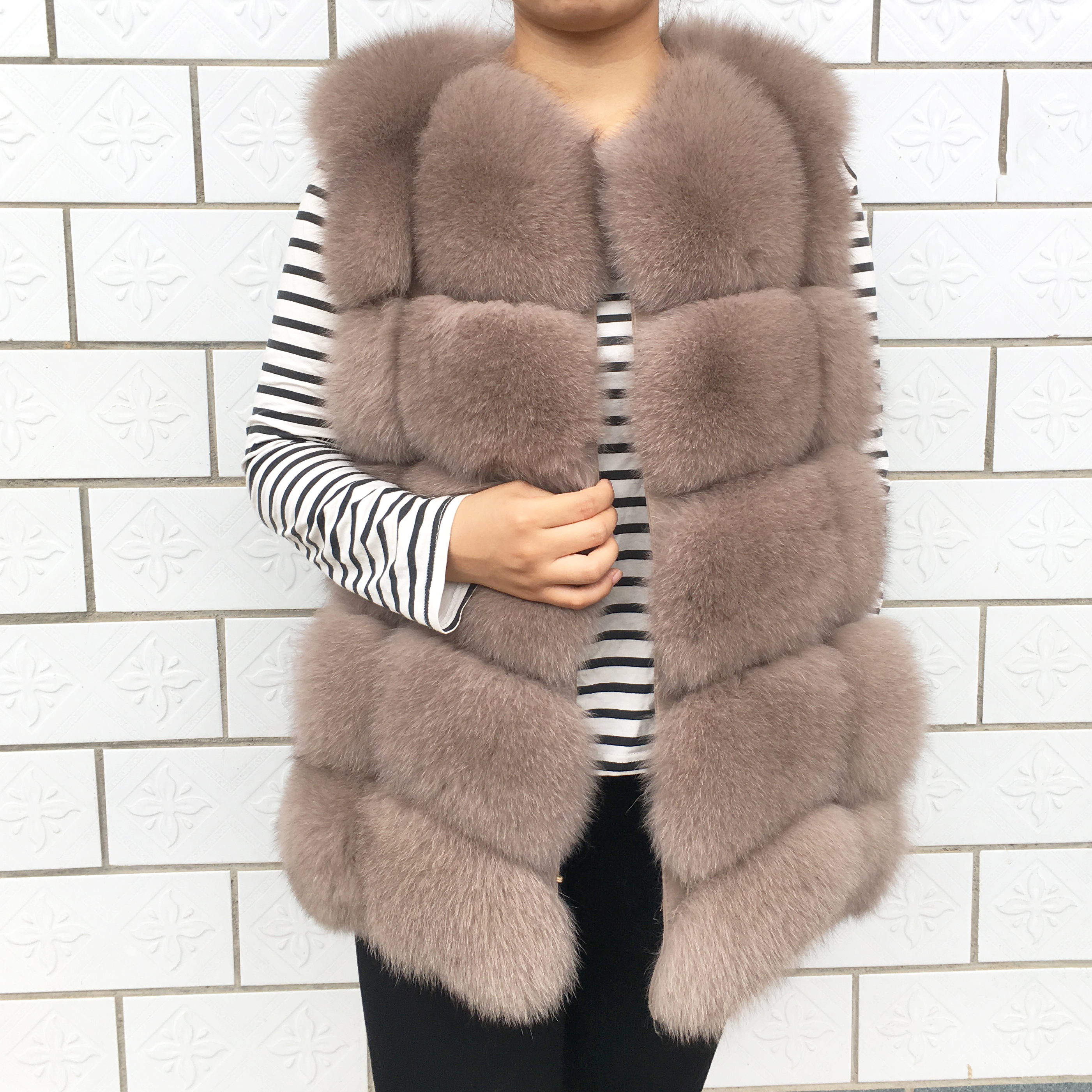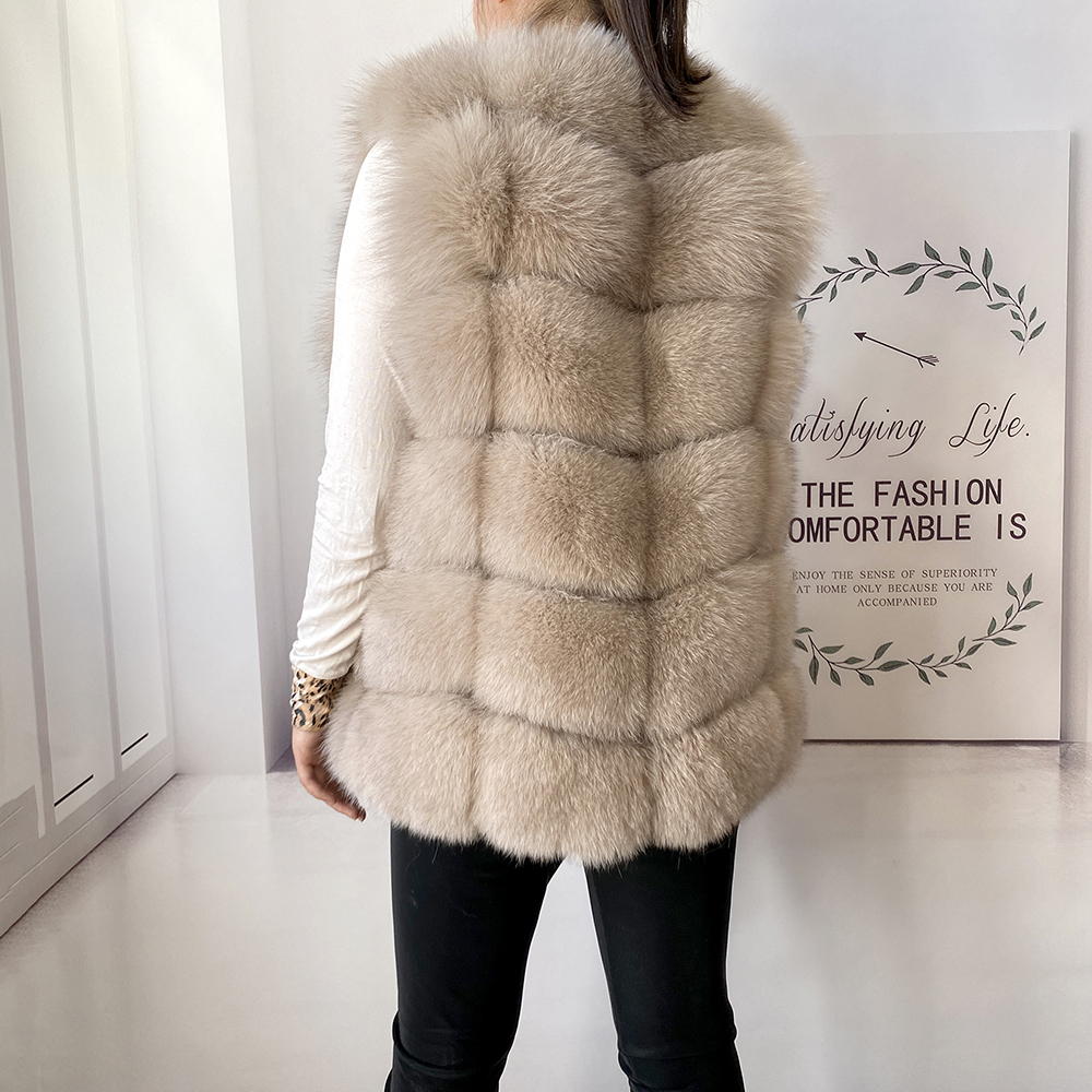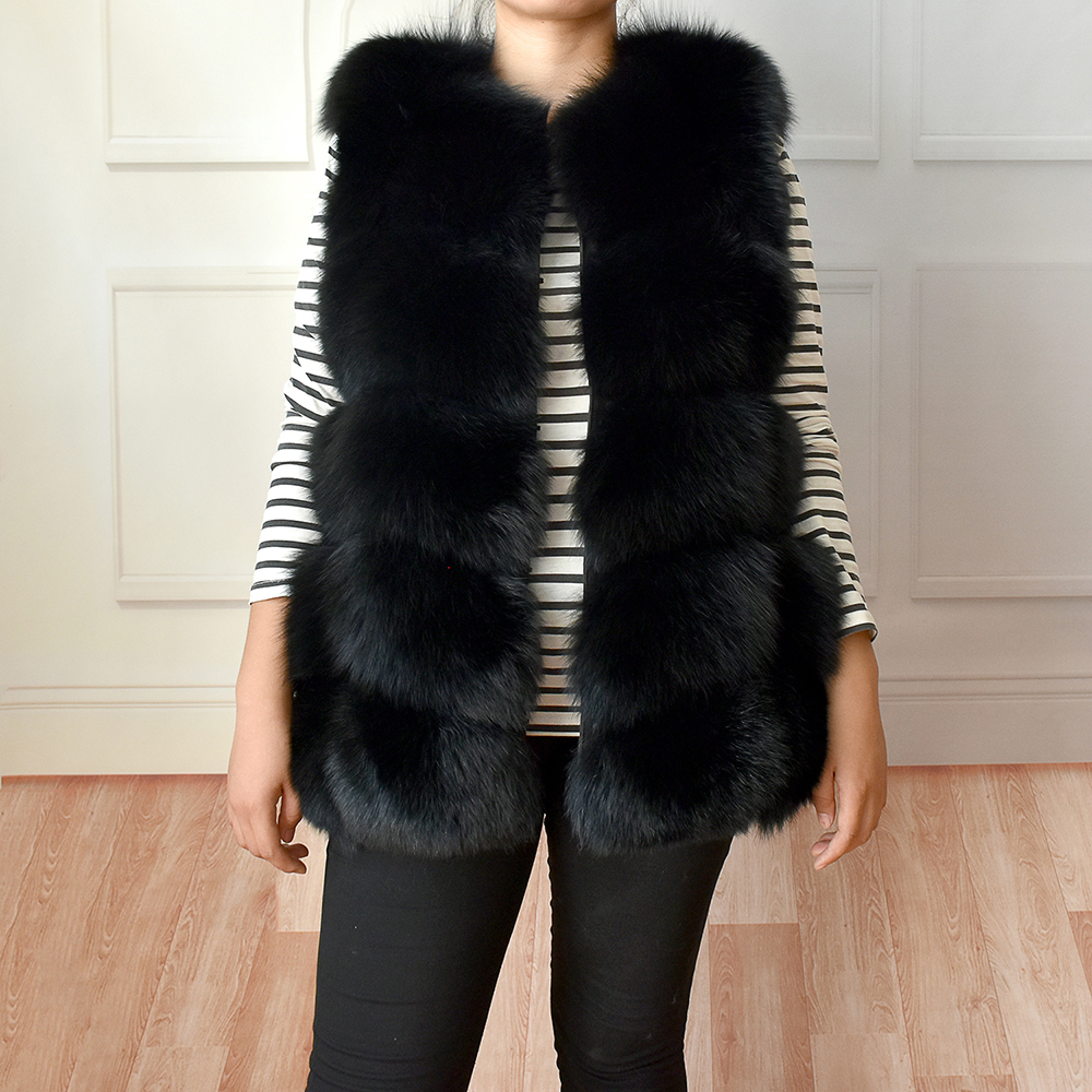 Women's Winter Real Fur Coat High Natural Fox Fur Vest Luxurious Warm Sleeveless Dark buckle jacket