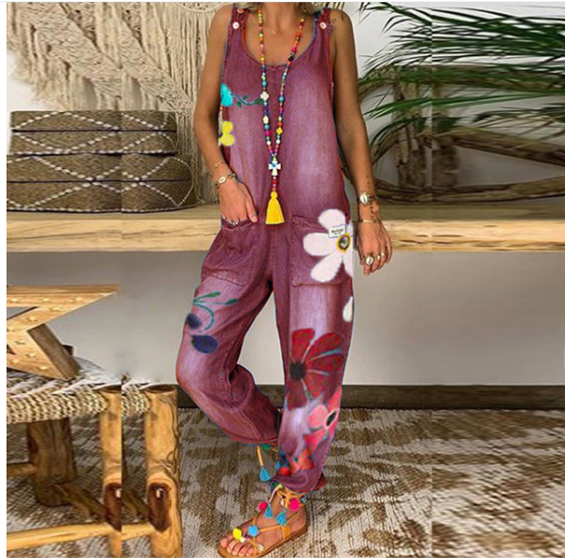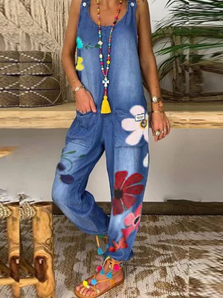 YICIYA Women's Loose Sleeveless Denim Jumpsuit Suspender Denim Collar Wide Bead Jumpsuit Blue Pocket Jeans Jean Femme Pants