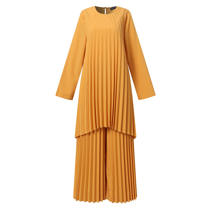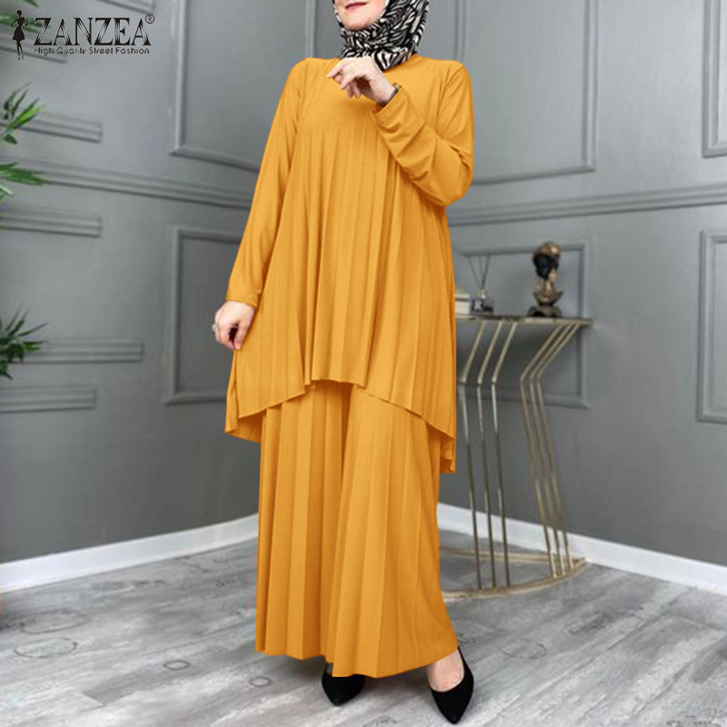 Package included:1 Suit(Blouse+Pants) Material:95% Polyester+5% Spandex Colors:Black,Green,Yellow Sleeve Length:Full Sleeve Neckline:O-Neck Pattern:Solid Color Length:Ankle Length Buckle chain:Buttons on the back Waistline:Elastic waist Thickness:Thin Decoration:Side Pockets Features:Pleated design Style:Leisure,Bohemian,Retro,Europe,Muslim Suit Abaya Kaftan Season:Spring,Summer,Autumn,Winter Occasion:Family,Party,Beach,Wedding,Holiday Attentions: 1.The Real Object May Exist Slightly Colors Differences Compared To Images As Different Computers Display.Caution If Minding,Thanks. 2.There Might Be A Manual Measuring 1-3 cm Error.Sorry For Any Inconvenience. 3.Please Prevail On Real Item, Model Images For Reference Only. 4.Attention!!!Please check the size chart carefully before placing the order.