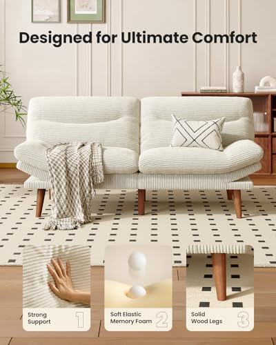 Maximize comfort and space efficiency with our convertible futon sofa couch. Featuring soft, textured corduroy fabric, the vintage look is stylish while providing lasting comfort for lounging, sitting, or sleeping, making it an ideal solution for apartments and mid-century inspired living spaces.