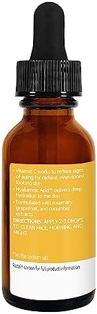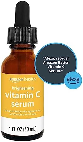 Amazon Basics Brightening Vitamin C Serum is formulated with Rosemary, Grapefruit, and Cucumber extracts. Formulated without fragrance, this daily use serum provides beneficial Vitamin C and Hyaluronic Acid to brighten and hydrate for even tone skin.