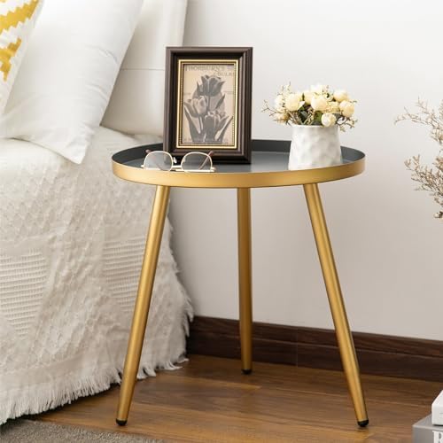 - This side table can be used as a small coffee tables for small spaces, small round side table held up with smooth matte golden powder-coated legs.