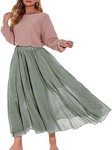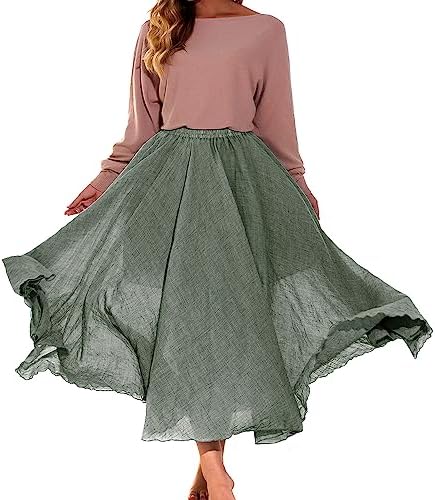 ASHER FASHION Women's Bohemian Style Elastic Waist Band Cotton Linen Long Maxi Skirt Dress