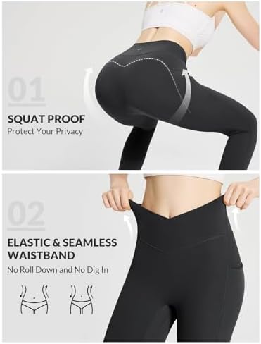 BALEAF Leggings with Pockets for Women 25'' Lightweight Cross Over