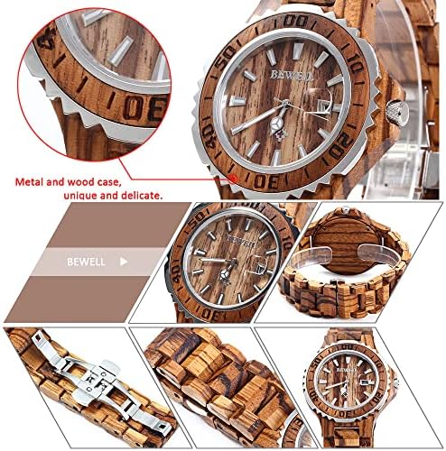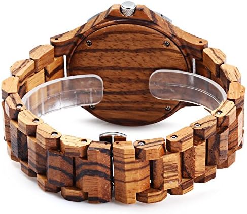 Features: - Each watch uniquely made by hand of solid wood, healthy and comfortable couple watch (non-toxic hypo-allergenic). - Metal and wood Case, unique and delicate wood watch set. - High quality Japanese imported movement wood watch bewell, keep the time precise, and it is accurate to within 26 seconds per year. - It sets with luminous hands, you can see the time in the dark. - 3H date, you can see it anytime you want wood watch date. - Adjustable to fit any wrist, the band is designed longer then need, all you need to do is to resize it as you want. - Butterfly buckle, easy to take on and off. - Water resistance at 30m, convenient to you daily life wood watch waterproof, but not suitable for swimming or bathing. - Battery life is up to 24-36 months, very durable. - It has two version: men size and women size, it will be a good gift for your lover no matter you are a boy or a girl! Brand: Bewell Watches categories: Couple tables Watch style: Retro Style elements: Retro Shape of the dial: Round Movement type: Quartz watch Display type: Analog Case material: Wood Band material: Wood Clasp type: Butterfly clasp Water resistance: 30 meters Special features: Date Package weight: 0.165 kg Package size (L x W x H): 24 x 6 x 2 cm / 9.43 x 2.36 x 0.79 inches The male dial dimension (L x W x H): 5 cm / 1.96 inches The male watch band dimension (L x W): 2.2 cm / 0.86 inches The male watch weight: 0.080 kg The male watch size (L x W x H): 23cm / 9.04 inches The female dial dimension (L x W x H): 4cm / 1.57 inches The female watch band dimension (L x W): 1.8cm / 0.70 inches The female watch weight: 0.050 kg The female size (L x W x H): 22.5 cm / 8.85 inches Package contents: 1 x Men Wooden Quartz Watch 1 x Women Wooden Quartz Watch 2 x Watch Box 1 x English instruction 1 x Remove links tool