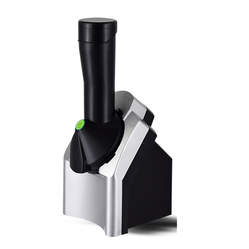 5.Simply insert the frozen banana or any fruit of your choice into the chute and push it down with a plunger to turn the frozen fruit into a dessert in seconds. It's simple and fun to make!