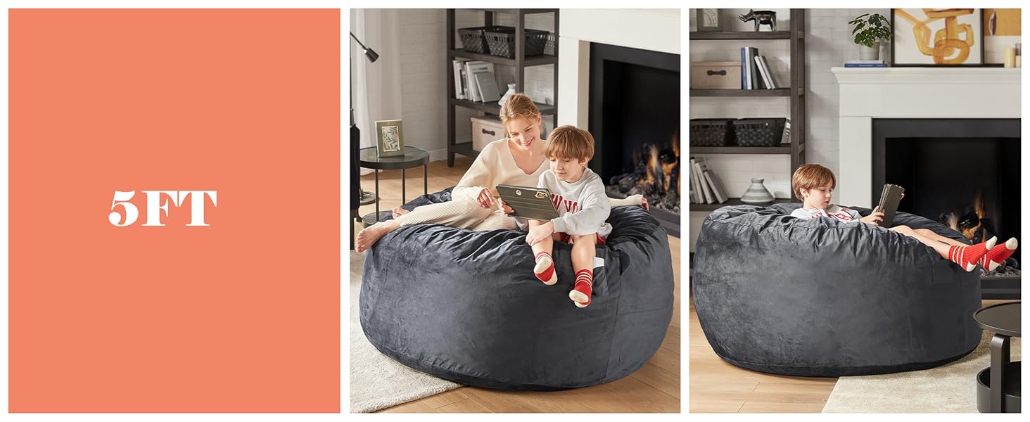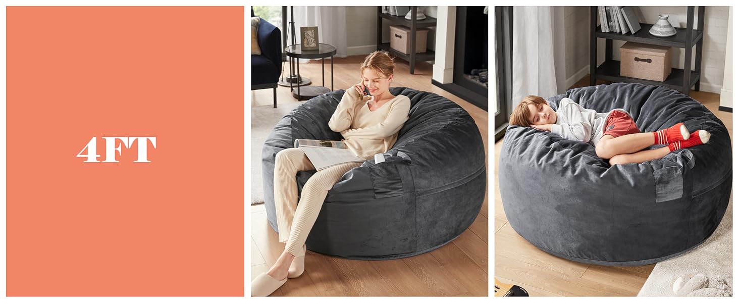 I love the size and color. Also pretty comfy. Doesn't really reshape after you sit in it. Almost have to refluff it but still holds that shape for the most part. The handle to move it broke off leaving a tear in the fabric so I'll be sewing that. Price was a little on the higher side compared to what I was hoping to pay but overall love the size and works good as my gaming chair. Big enough for a 5'8" adult!