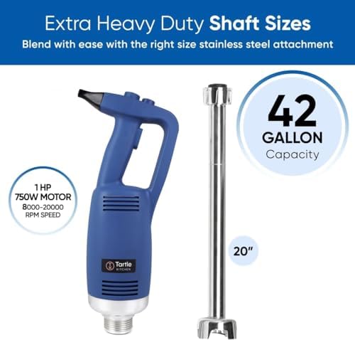 Every recipe has its own secret, so do yours! This immersion blender allows you to adjust to variable speed by simply turn the dial on the top. So you can set the perfect speed for your recipe and stay with the same delicious consistency for your return customers. With the 1 HP motor that can speed up the workflow, it is capable of blending up to 45 gallons of product.