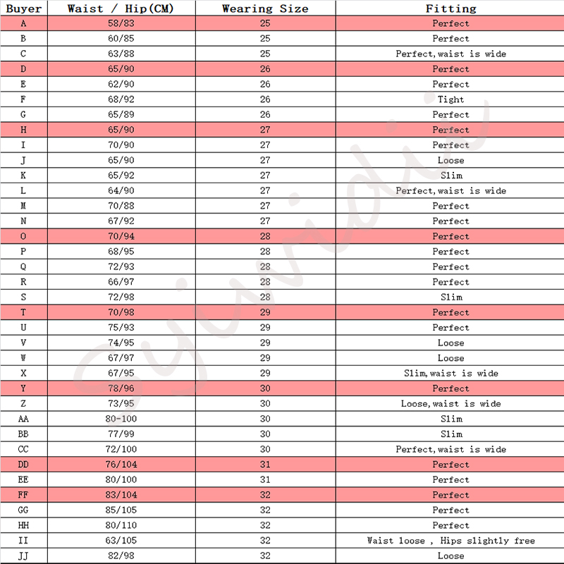 | CC | 72/100 | 30 | Perfect,waist is wide |