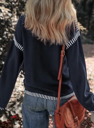 Womens Oversized Sweaters Fall 2024 Fashion Clothes Trendy Long Sleeve Color Block Knit Pullover Sweater Tops