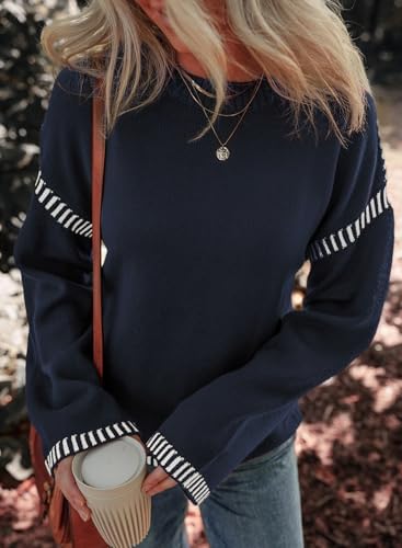 Women's 2024 Fall Fashion Crew Neck Long Sleeve Color Block Knit Loose Pullover Sweater Tops