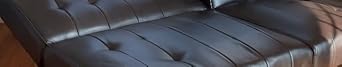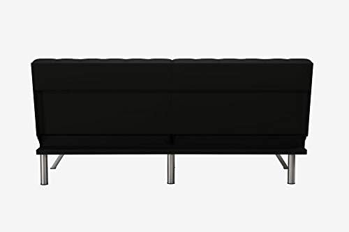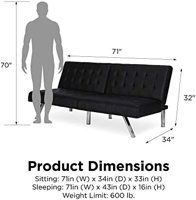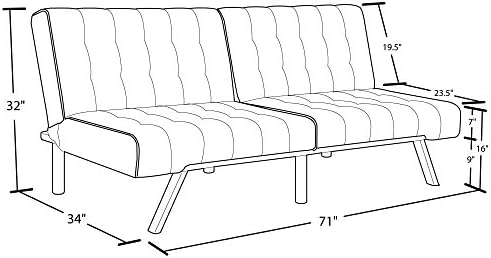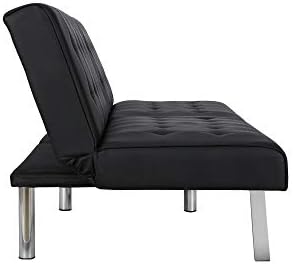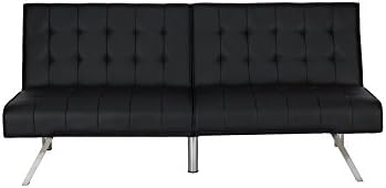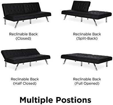 DHP's Emily Convertible Futon has a split-back. With its Click-Clack technology, the sofa easily adjusts from sitting, to lounging to sleeping positions. The linen or faux leather material.