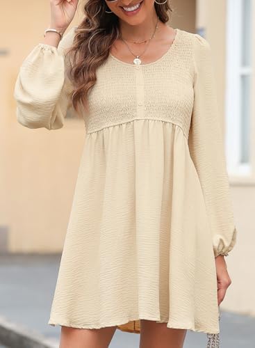 Dokotoo Womens Long Sleeve Empire Waist Smocked Flowy Mini Dress