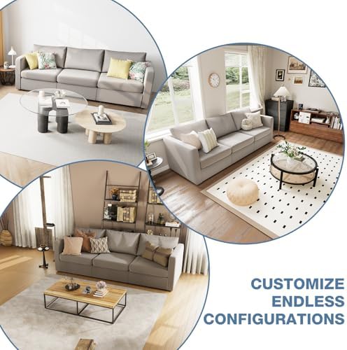 CHITA Oversized Modular Sectional Fabric Sofa Set, FSC Certified Extra Large L Shaped Couch Reversible Chaise Modular Sectional Couch, 112 inch Width,4 Seat Modular Sofa with Storage Ottoman, Linen