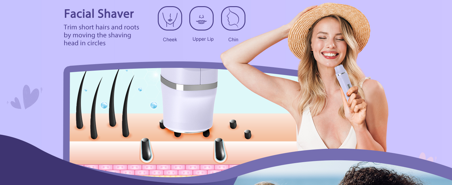 Electric Razors for Women - Wet/Dry Womens Electric Shaver for Legs, Replaceable Body Hair Blade Heads&Hair Remover for Face Head, No Nick, No Cut, No Razor Burn, Purple