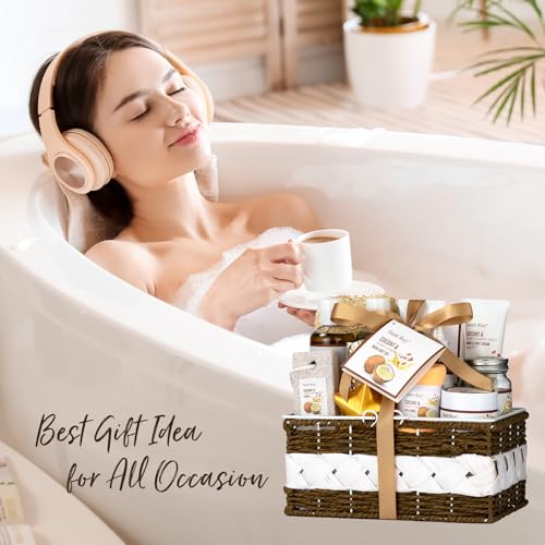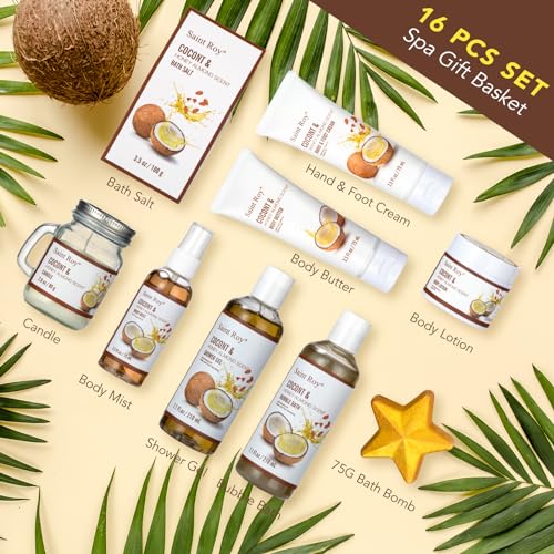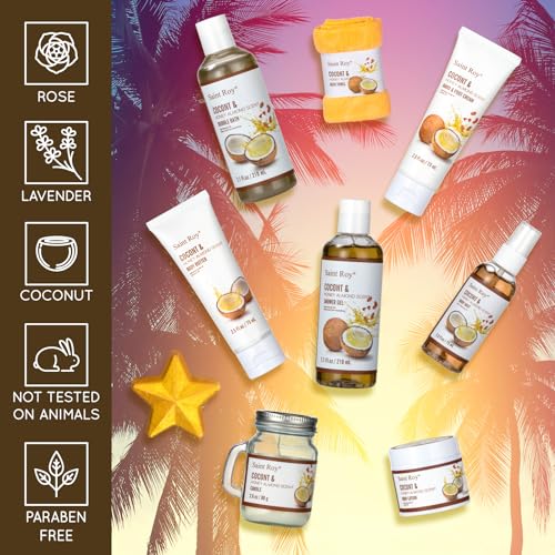 Saint Roy Spa Gift Set – Coconut &Honey almond Scented Bath Essentials Gift Basket withLavender essential oils & Rose essential oils which naturally soothe the body and mind.