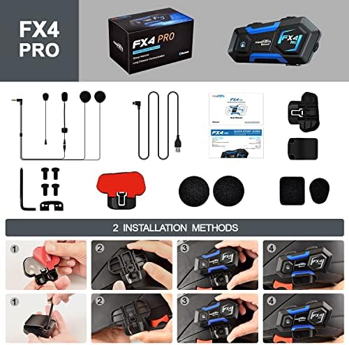 The FX4 Pro Bluetooth Headset contains an advanced built-in Noise Cancelling Mic and Bluetooth chipset sound processing system, which significantly eliminates traffic, engine, and open road noise. Come with 40MM high impedance and high fidelity speaker, Whether you are in group intercom or listening to music/FM, you are able to hear very clear sound, allowing the rider to hear everything around to increased road safety, reduced risk of accidents. Ideal bluetooth group intercom for riders, commercial drivers, and outdoor sports.