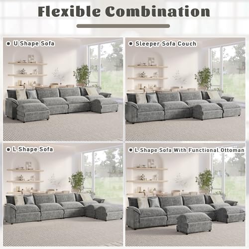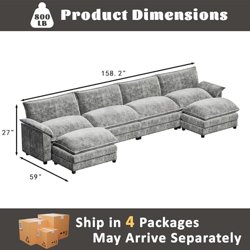 This Furmax U shaped sofa couch is made of soft, skin-friendly fabric and features a strong, sturdy construction. Its understated yet luxurious appearance adds a touch of elegance to your home, bringing warmth to your family and vitality to your gatherings. We are confident you will be satisfied with this purchase.Specifications:Each Seat: 33.4 (W) x 22.8 (D) InchesOttoman: 35.4 (L) x 25.5 (W) InchesDimension: 158.2 (L) x 29.5 (W) x 27 (H) InchesWeight Capacity: 330lbs x Each Seat