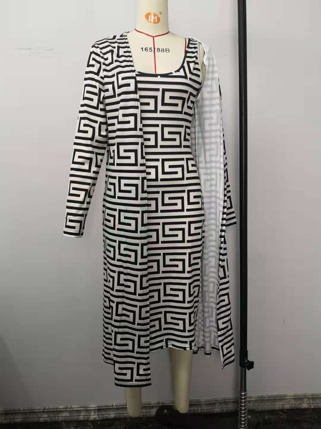 geometry Print Women's Set Long Sleeve Long Cloak Tops Bodycon Midi Dress Two Piece Matching Set Outfits femme y2k