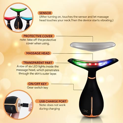 GLO24K Red Light Beauty Device for Face and Neck. Based on Triple Action L E D, Thermal, and Vibration Technologies.