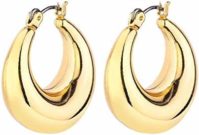 These chunky hoops are hollow and very lightweight. They are comfortable to wear and don't drag your earlobe down like other earrings. You can wear them all day without issue and add to any outfit to instantly update.