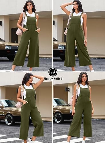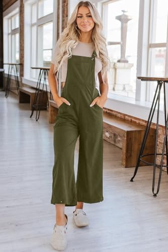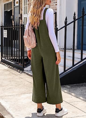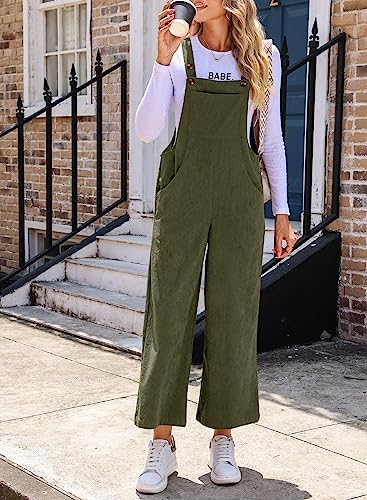 Happy Sailed Women Corduroy Overalls Casual Loose Sleeveless Adjustable Strap Wide Leg Jumpsuits with Pockets