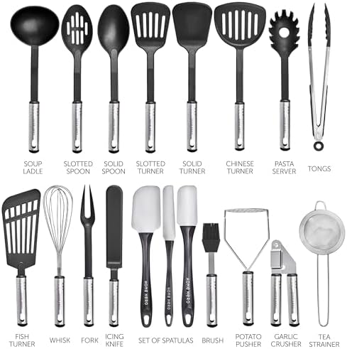 Its classic silver and black look goes with any kitchen & the variety of kitchen tools ensures any cook has exactly what is needed at hand for the perfect meal every time.