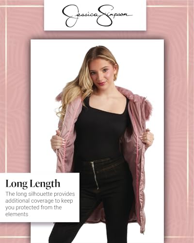 Jessica Simpson Women's Long Puffer Jacket - Quilted Winter Coat with Faux Fur Trim Hood - Insulated Coat for Women (S-XL)
