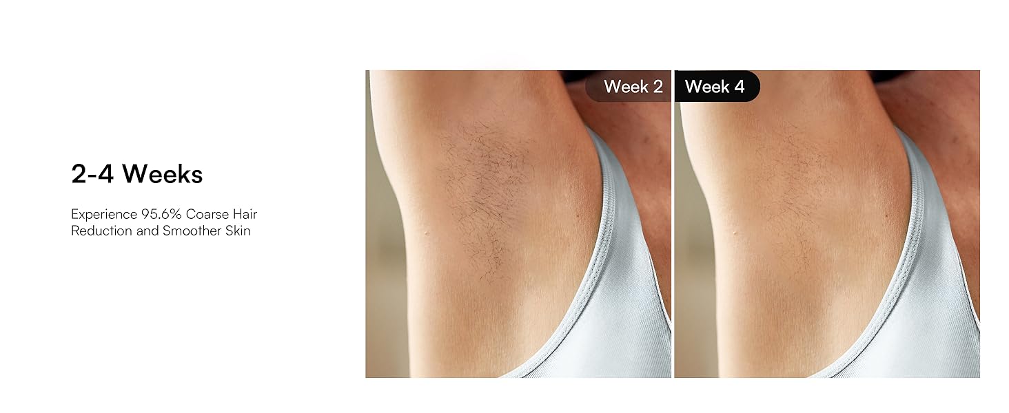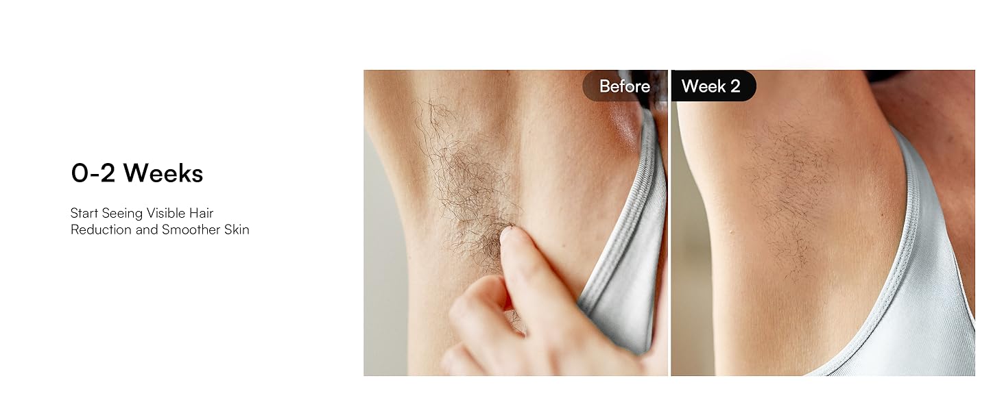 I've been using this laser hair removal device for almost two weeks, and I'm already seeing noticeable results. The hair in the treated areas is growing back much slower. I can't wait to see the full results with continued use.The build quality of the device is excellent. It feels sturdy and well-made, with a sleek design that makes it easy to handle. The instructions were clear, and the device itself is user-friendly. I also appreciate the adjustable settings, which allow for a customized experience based on skin sensitivity and usage area.Overall, I’m extremely happy with this purchase! It’s affordable, effective, and built to last. Highly recommend!