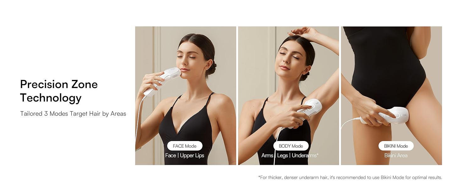 My review is for the Laser Hair Removal for Women and Men with Ice-Cooling Care, Latest Generation for Effective & Long-Lasting Results At-Home IPL Hair RemoverI've never used one of this with any sort of noticeable benefit, HOWEVER, you must have the right color hair to skin difference for this to work. I do fall within the applicable range. More melanated folks are less likely to find benefit with this...as in, it may not work AT ALL for you.Anyways...I did not notice any irritation.I've done a few treatments and be advised, you CAN hurt yourself with this. So i'd caution against giving this as a gift for someone in their teens as an option instead of lifetime shaving. I found myself going over areas more than 1x and not realizing it...and it definitely got a bit "hot" to say the least.It does come with the eye protection glasses that you absolutely MUST wear, and they are decent in quality (though if you have more expensive ones...use those instead of these).I have quite sensitive skin, and so I'm generally cautious when trying new products like this (though not severe enough that I first patch test). I DID experience irritation, but I think that was mostly new user error. It went away quickly with glycolic acid wipe and emollient lotion a few hours after my test-run with the device.Bottom line: I would potentially purchase again, following seeing long-term results (only 3 treatments in, so far, so good?)Most annoying part of this is it comes with absolutely EXCESSIVE packaging. Such a waste.