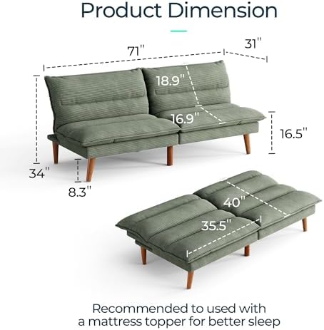 LINSY Futon Sofa Bed Corduroy Convertible Couch