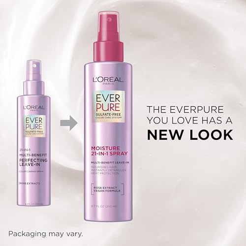 L'Oreal Paris EverPure 21-in-1 Color Caring Spray with almond milk and rose extract primes and perfects color treated hair by delivering 21 essential benefits in 1 treatment. Sophisticated scent features notes of fresh almond blossom and creamy musk. OUR PUREST RESPECT FOR YOUR HAIR - 100% sulfate-free, paraben-free, dye-free, gluten-free and vegan. Validated by hair colorists.* Because You're Worth It *Validated by an internal expert team of professional hair colorists with extensive in person testing.