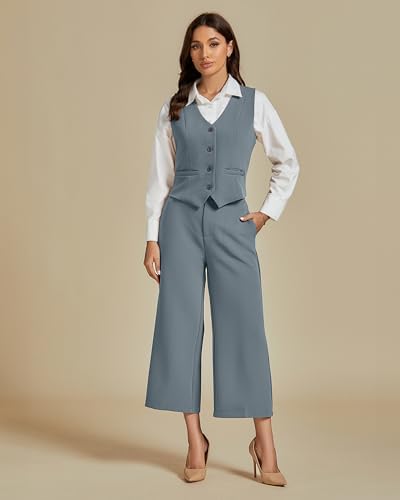 luvamia Wide Leg Sets Women 2 Piece Outfits Dressy Pants Suits for Women Dressy