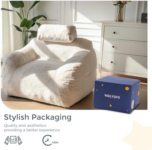 I was in search of a comfortable chair that was not expensive. The Maxyoyo Giant Bean Bag Chair with Fluffy Pillow was a chair I wanted to try.It is a low seating chair and unbelievable soft and comfortable . It took me no time to get it out of the box and to remove the plastic (sealed very tightly). Be prepared for the smell once the chair is released from the plastic. That was the only negative thing I have to say about the chair. ( I removed the covering and washed it in cold water and dried it on warm in the dryer). Not difficult to put back on. I am happy with my purchase. I hope I gave enough information if you are interested in purchasing this bean bag chair.
