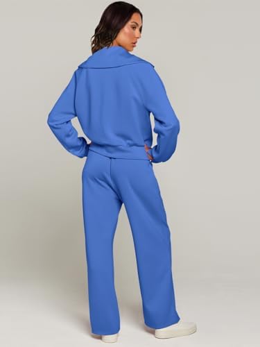 MEROKEETY Women's 2 Piece Outfits 2024 Long Sleeve Half Zip Sweatshirt Wide Leg Sweatpants Lounge Sets