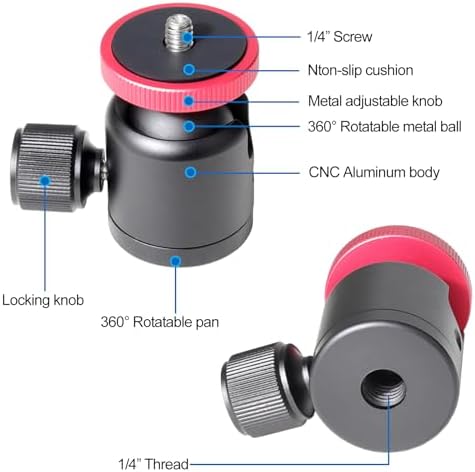 This is a nice, sturdy little tripod with a useful ball joint head. The head moves freely andeasily until locked in place with the set screw, which holds it very firmly as there’s no give at all once tightened. Tripod and head can be unscrewed and used independently if needed. There’s a fair amount of thread on each screw, so I could see some cameras or attachments needing a washer or something if they are too shallow. The base around the screw is a grippy rubber, which helps hold your instrument in place once tightened. The tripod base is rather light while the ball joint head is kind of heavy, so your adding some weight to your camera bag if you carry the full thing. However, it is very sturdy. Would be nice to have had a bubble level on top of the head but I realize that only adds to the cost and possibly undermines the sturdiness of this little tripod. The head is not fluid and smooth for video, it’s either fully loose or locked in tight, as might be expected at this price point. Overall a very useful tool for your camera bag but a bit heavy for everyday carry when the ball head is included.