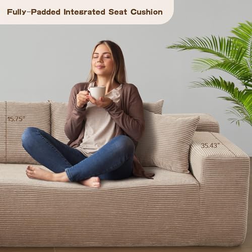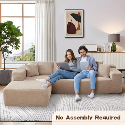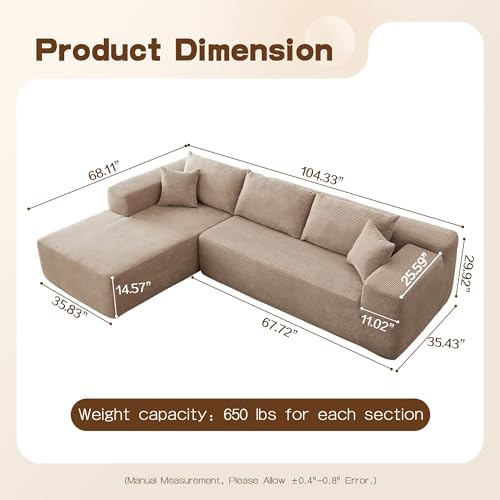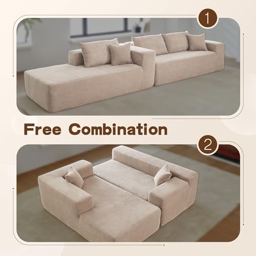 Modular Sectional Sofa Couch,L-Shape Upholstered Cloud Couch,Modern Minimalist Couches for Living Room,Free Combination Deep Seat Corner Couch (Camel, Corduroy,Left Facing Chaise)