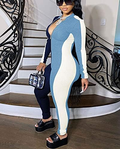 Mrskoala Women's Sexy V Neck Comfy Party Jumpsuit Long Sleeve Bodycon One Piece Long Pant Jumpsuit Romper Clubwear
