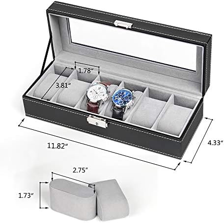 I just marvel at the sight of my first 6 watches sitting snuggly and sharp looking! I just recently received this bluewatch display box. I keep taking this gorgeous, well made, beauty out of my safe, each night. I can’t help but admire how my watches, collectively now, look so beautiful, all lined up together! This box has the feel of leather, although it isn’t. The pillows fit perfectly inside each watch bracelet. The latch functions easily and the lid closes tight. The glass window display, adds a nice visual effect! I ordered just this one box to see just what everyone was talking about. I am so impressed, that I am placing an order for ablack case! For the price, you can not go wrong! I look forward to this addition for my watch collection! Highly recommend!