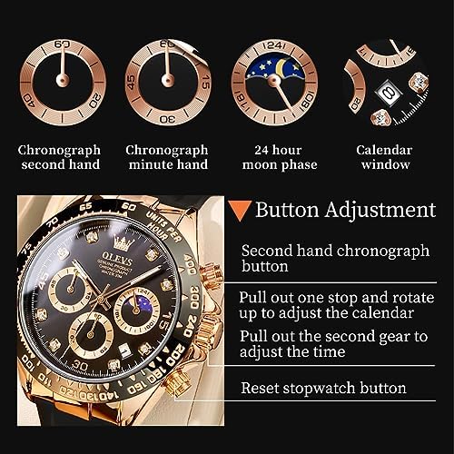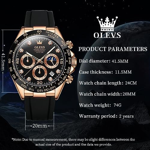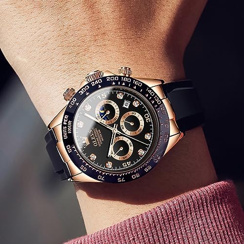 OLEVS Mens Watches Sport Silicone Band Chronograph Multifunction Luxury Diamond Moon Phase Analog Quartz Male Wrist Watches for Men Waterproof Luminous