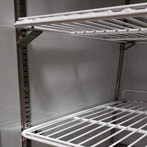 The freezers feature wear-resistant black vinyl exterior over sturdy steel for long term endurance. The interior is crafted from white painted aluminum with stainless steel floors for easy cleaning and a fresh appearance. Plastic coated steel shelves are easy to install and adjustable to accommodate your product.