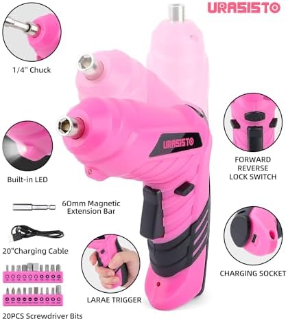Pink Household Tool Set with 3.6V USB Electric Screwdriver, 136 PCS Home Tool Kit with Cordless Lithium-ion Drill Driver, Hand Tool Kits for Women
