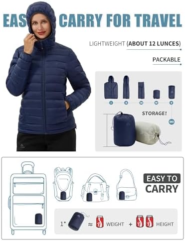 WOMEN'S LIGHTWEIGHT PUFFER JACKET--This women's winter jacket is not only warm, breathable, but also lightweight. The average weight of 350g will allow you to feel no constriction. The organizer bag we provide can be convenient for you to pack it into your closet at any time to save space.