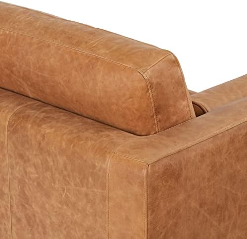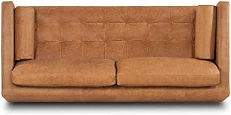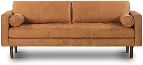 Beautiful soft and supple leather! Packaged extremely well, very easy to assemble, pretty much the perfect apartment sofa.-Sofa is boxed perfectly. There is a small “hatch” on the bottom where the instructions and feet are stashed.-2 bolsters are included, they’re a little weak/soft. They compress easily, seem to be more for looks than function.-Has around 6 inches of ground clearance, allows you to easily sweep/vacuum under. Also is very light, can easily be moved to clean behind.-Perfect size to sit 2 with space to sprawl or 3 in a normal sitting position. Great depth, with cushions removed it’s easily big enough for someone under 6’ to sleep on. Comfortable, leather is nice quality, wipes down easily.