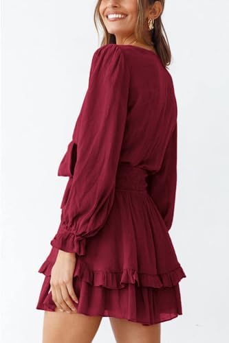 PRETTYGARDEN Women Long Sleeve V Neck Swing A-Line Dress Short Homecoming Dresses